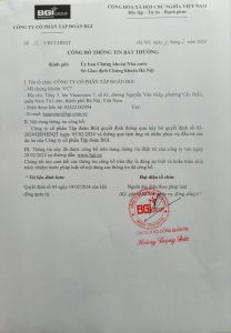 Chi tiết về Quyết định này cũng đã được công bố trên trang thông tin điện tử của Công ty vào ngày 20/02/2024 tại đường dẫn : www.bgi.vn mục Cổ đông/Công bố thông tin