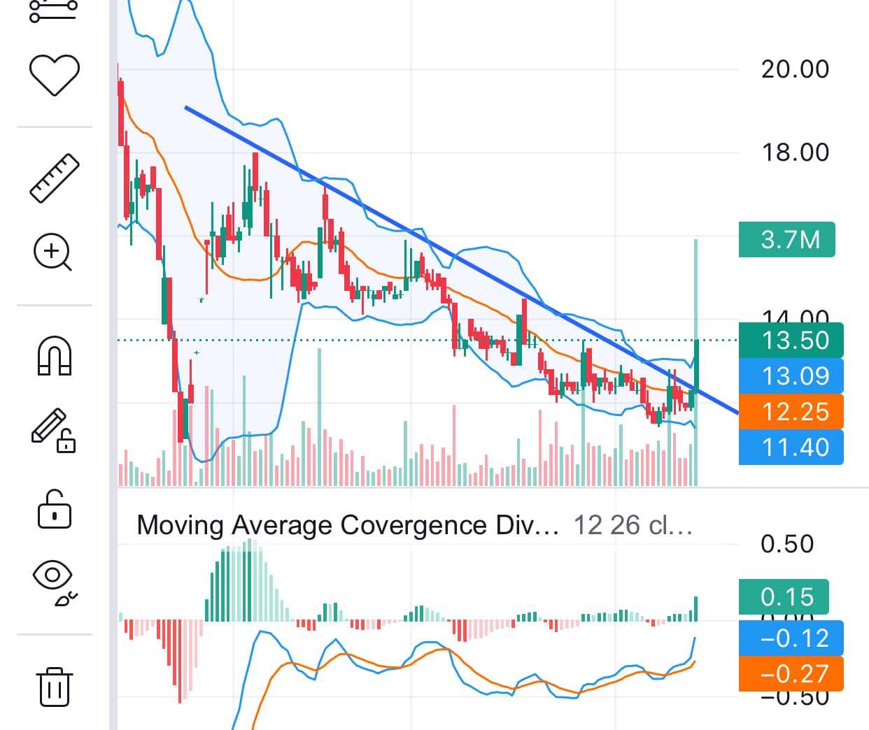 Chân sóng, đáy. Thanh khoản đột biến cao nhất từ trước tới nay, trend điều chỉnh bị vượt . Trước mắt lên 2x nhá