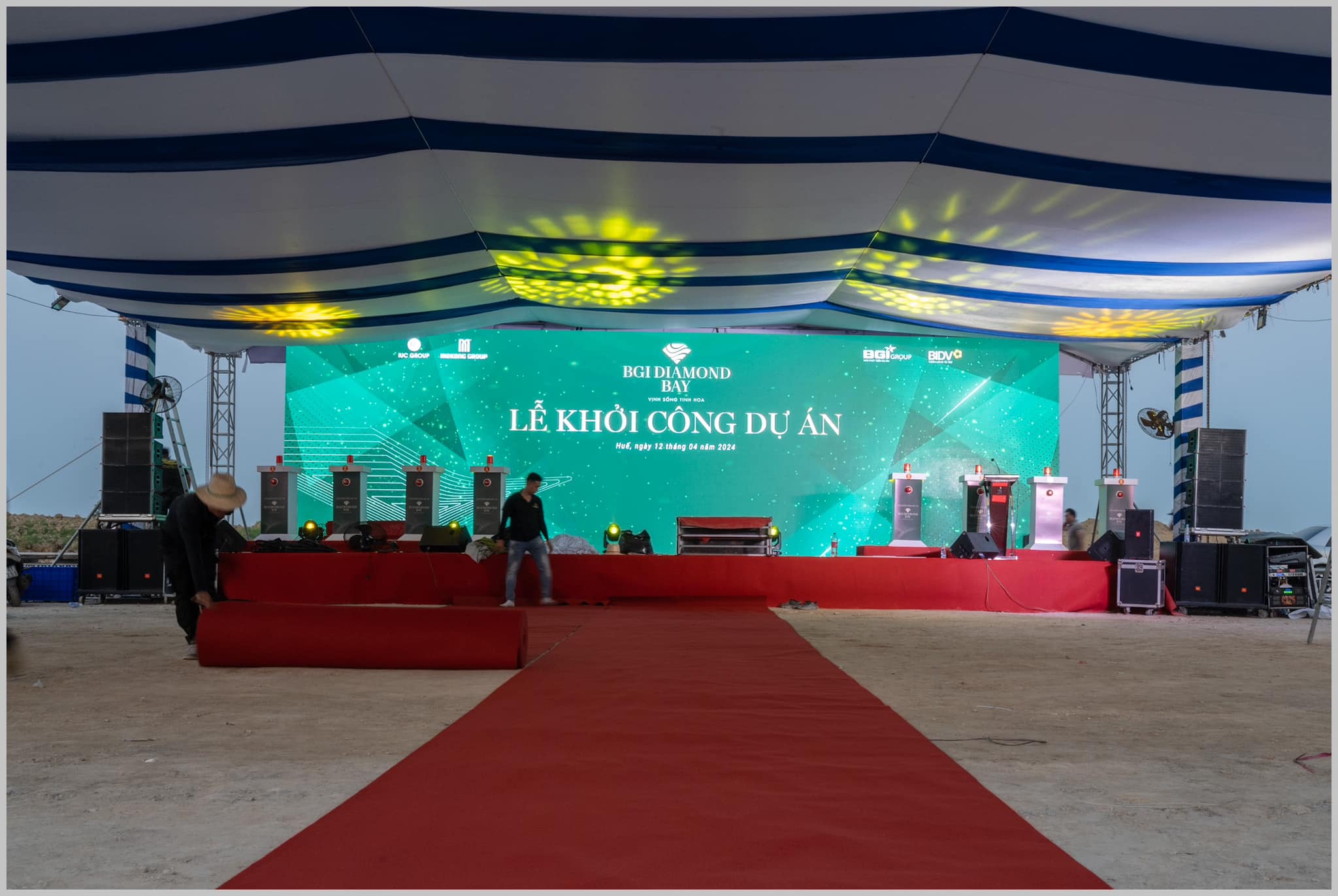 Công tác chuẩn bị cho lễ khởi công dự án khu đô thị BGI Diamond Bay đã hoàn tất để sẵn sàng cho buổi lễ diễn ra vào sáng ngày 12/4/2024.