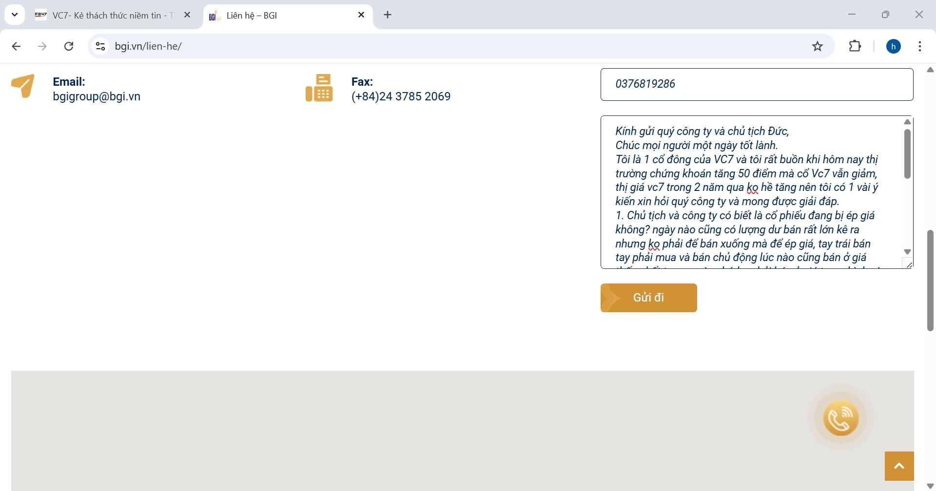 “HÃY VIẾT MAIL CHO CÔNG TY”, TIN NÀY CHẮC CHẮN SẼ ĐẾN TAI ĐỨC CHỦ TỊCH . bác có thể vào mục liên hệ trong trang web https://bgi.vn/ hoặc gửi mail trực tiếp đến mail: bgigroup@bgi.vn của BGI để hỏi, liên tục hỏi thì chủ tịch cũng chán nản mà cho tăng giá chăng. Càng nhiều ng gửi càng có tiếng nói.