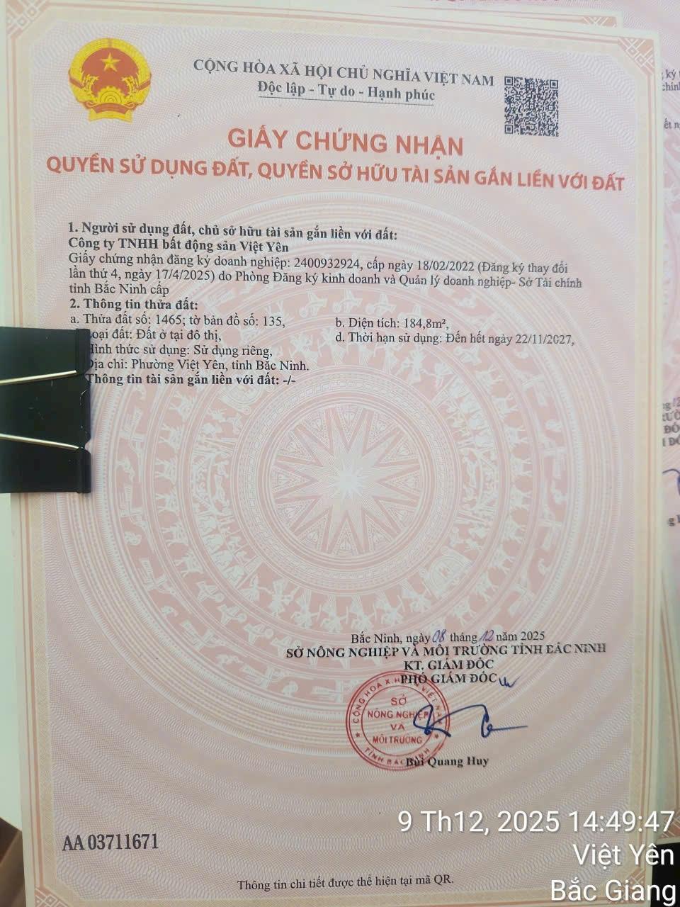 Tin mới nhất Việt Yên đã được cấp sổ đỏ rồi nhé