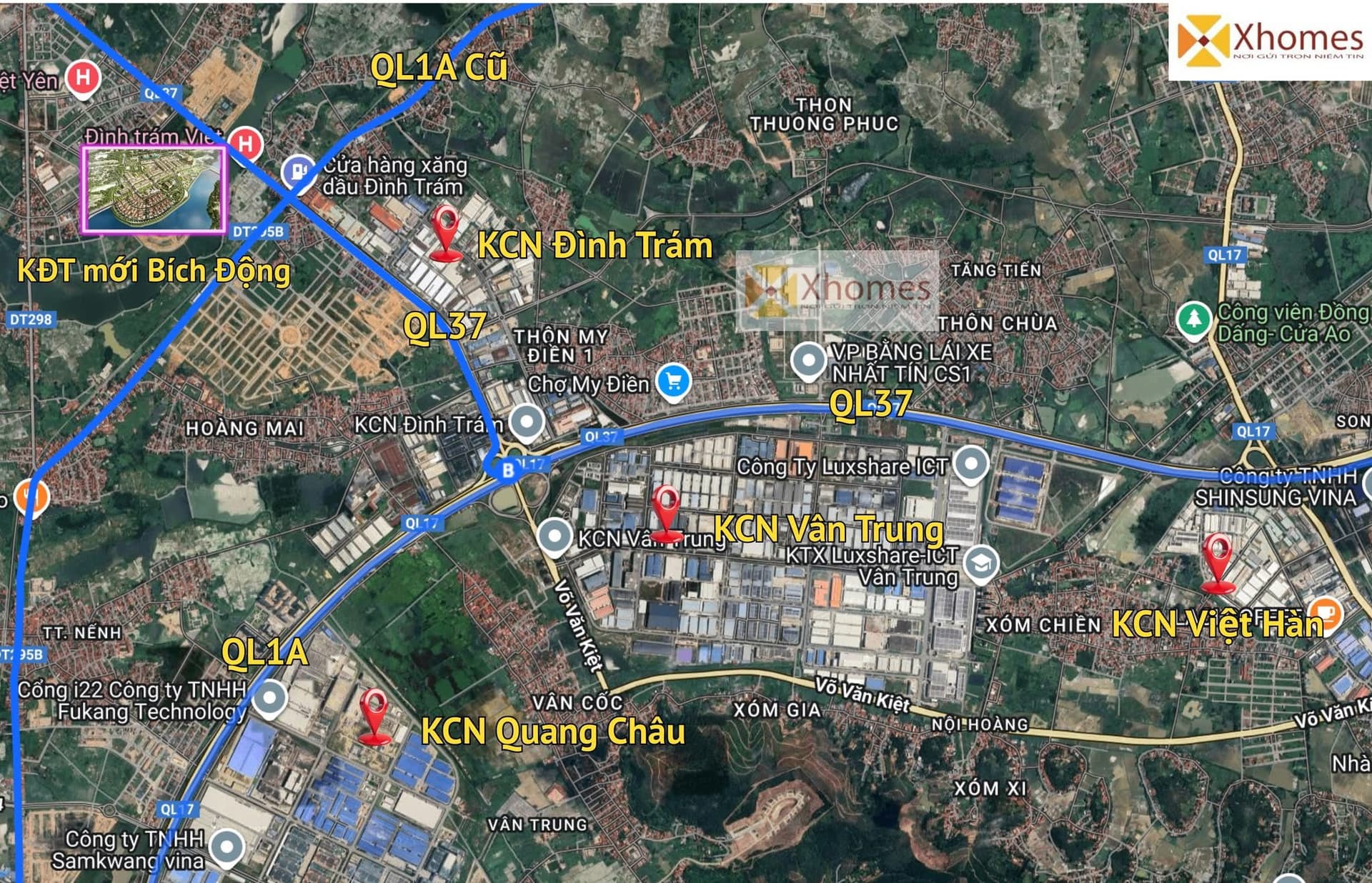 Nhận booking đợt 1 đất nền Việt Yên Bắc Ninh. Trung tâm phường Việt Yên Tỉnh Bắc Ninh (mới), Mặt QL 37, Gần cao tốc Hà Nội Bắc Giang, Quốc Lộ 1A, đường Vành Đai 4. Cách KCN Quang Châu, Vân Trung, Việt Hàn… Chỉ 3km, Foxconn, Luxshare… Sản phẩm mở bán: 472 lô căn nhà ở liền kề. 39 căn shophous. 42 căn biệt thự view sông. Diện tích 85 - 93 - 95 - 100m², Vỉa hè 5 - 6m. Pháp lý: Sổ đỏ lâu dài hạ tầng hoàn thiện. Tiện ích đầy đủ: UBND, bệnh viện, trường học, Doanh trại quân đội, Bảo hiểm XH, Chi cục thế, chợ trong vòng bán kính 300m. Quỹ đất vàng trung tâm Việt Yên - Giá F0 cực tốt trực tiếp từ chủ đầu tư - Cơ hội tăng giá mạnh sau sáp nhập Bắc Giang Bắc Ninh.