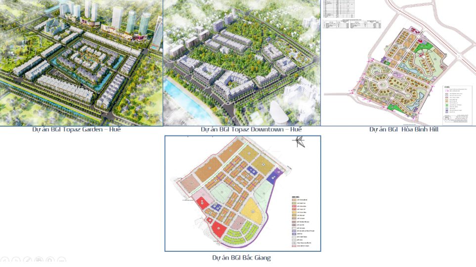 Dự án BGI Topaz Downtown-Zone A tại Khu A- Đô thị An Vân Dương, Thừa Thiên Huế với tổng mức đầu tư lên tới 630 tỷ, tổng diện tích gần 13,47 ha gồm 220 căn shophouse, nhà liền kề; vườn hoa cây xanh…dự kiến hoàn thành vào quý 3/2023. (tỷ lệ tham gia của BGI Group là 40%, tỷ lệ lợi ích là 64%)