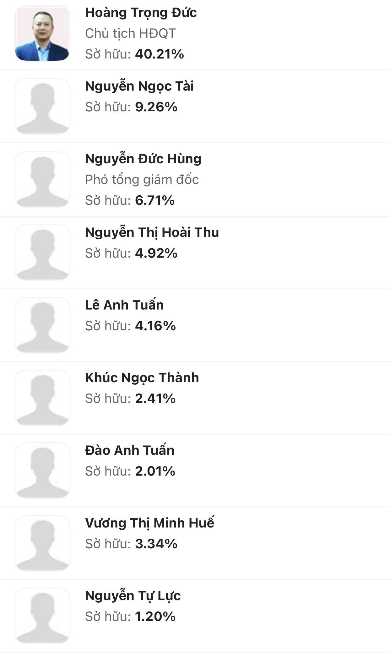 Ban lãnh đạo và người nhà nắm thế này thì quá an tâm. Lượng cổ đông nắm trên 1% ngày cảng sở hữu nhiều lên.
