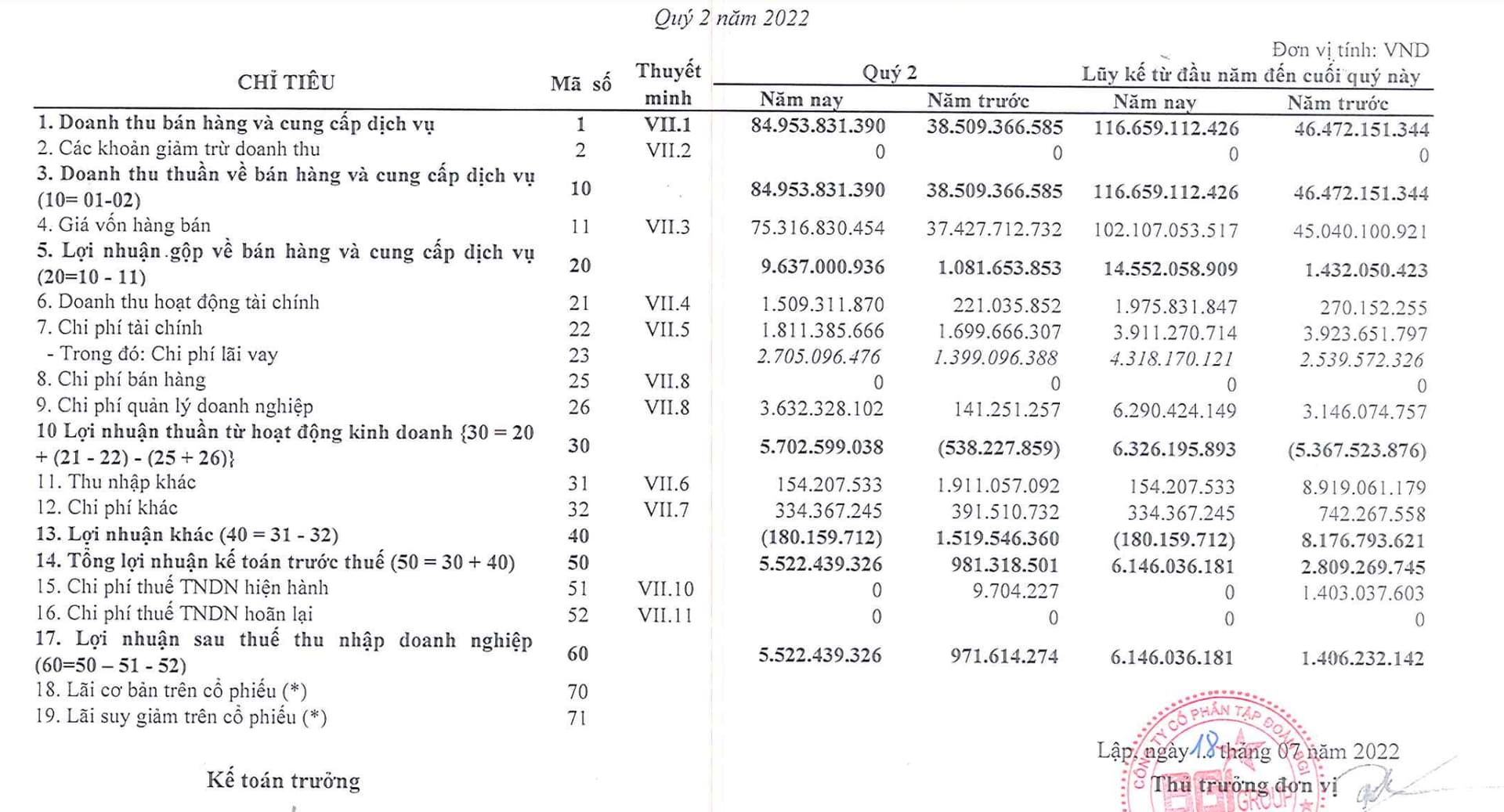 Ra bctc lãi 5 tỷ rồi đó AE , chưa ghi nhận bđs đâu, ghi thì lên 7x tỷ như dự tính của DHCĐ