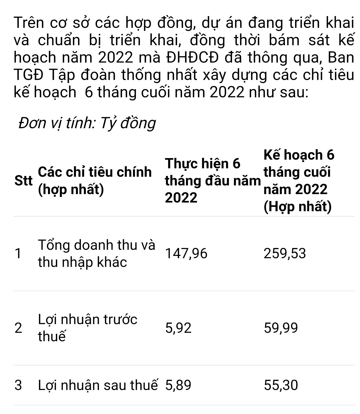 6 tháng mới đạt được 10% lợi nhuận kế hoạch 2022 thì tình hình cuối năm hơi căng bác ạ :))))