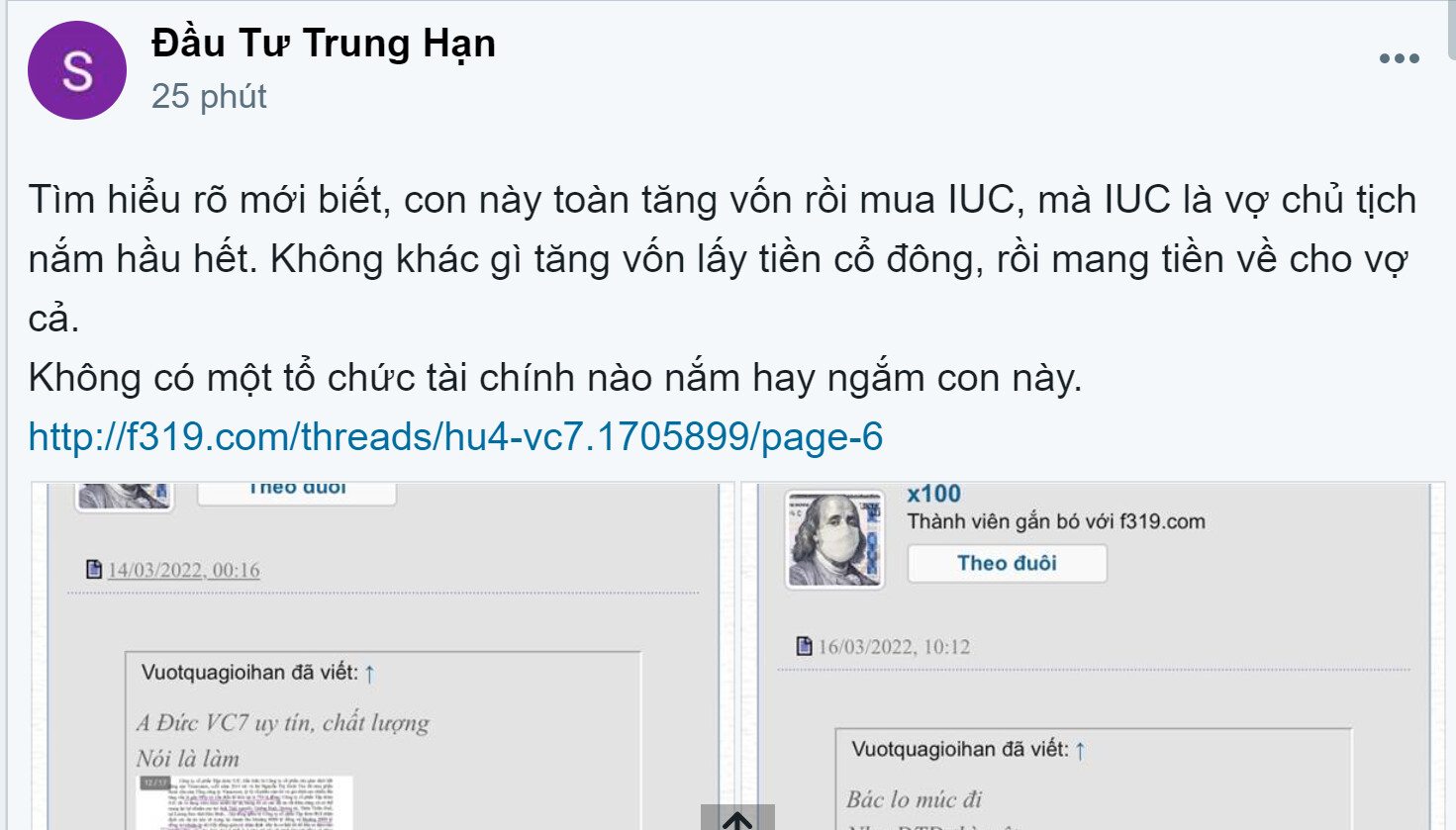 Vợ chồng a Đức nắm 99% IUC ngay ban đầu. IUC vốn là 750 tỷ đồng.