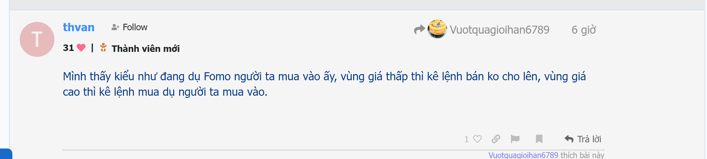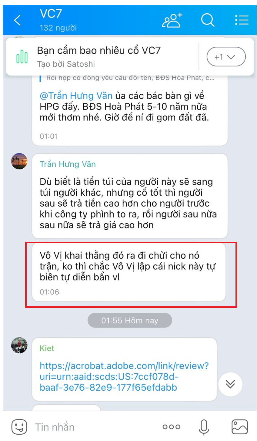Đầu tiên dùng nick Đầu Tư Trung Hạn hô VC7 lởm chê bai chủ tịch để gom hàng, bị Vô Vị và các anh chị em chửi.