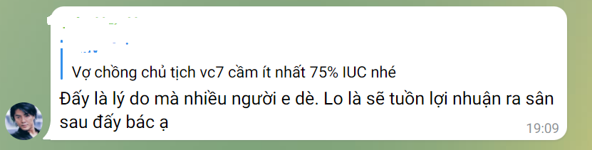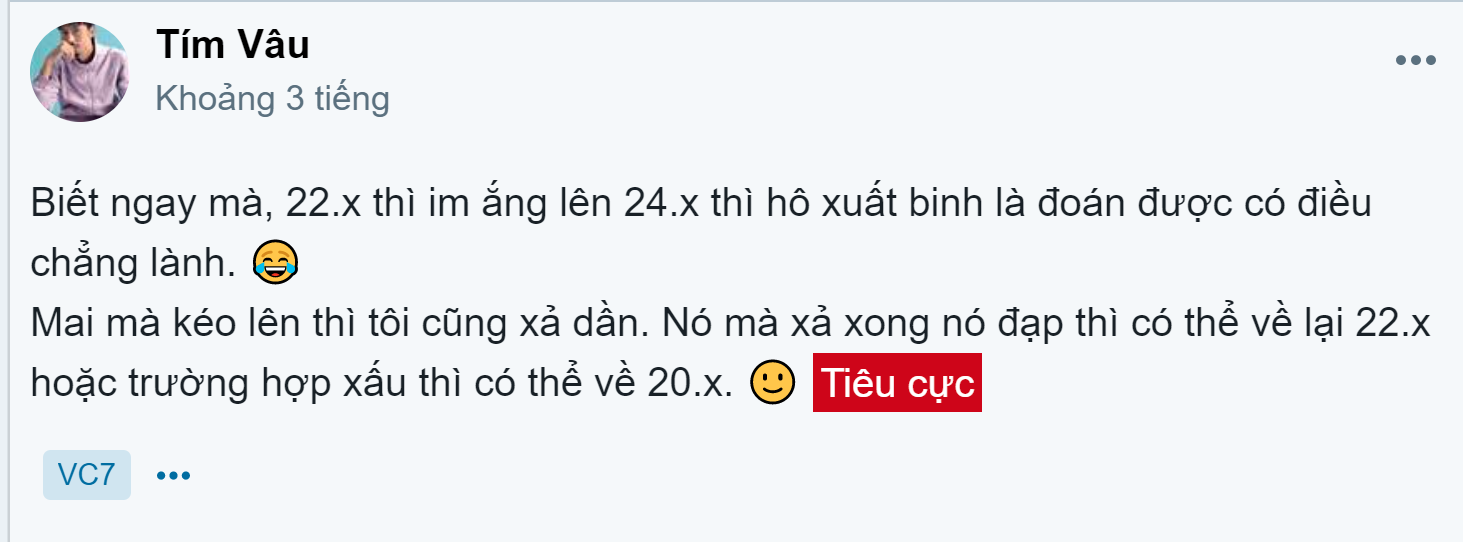 Vấn đề tôi e ngại, cũng là vấn đề mà nhiều người nhắc đến và cũng có suy nghĩ giống tôi. Chúc bác và cổ đông ở đây thành công với VC7, mình xin rút, bb mọi người.