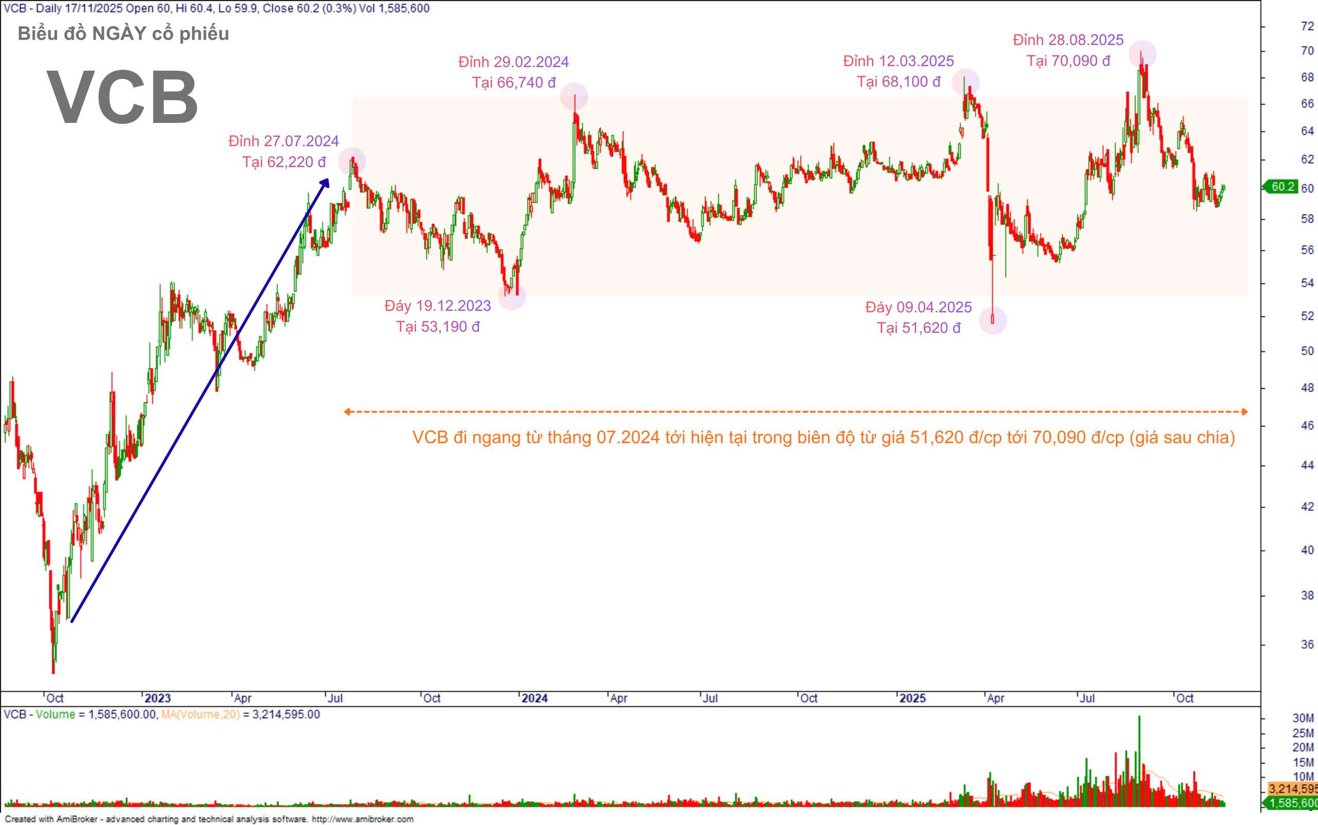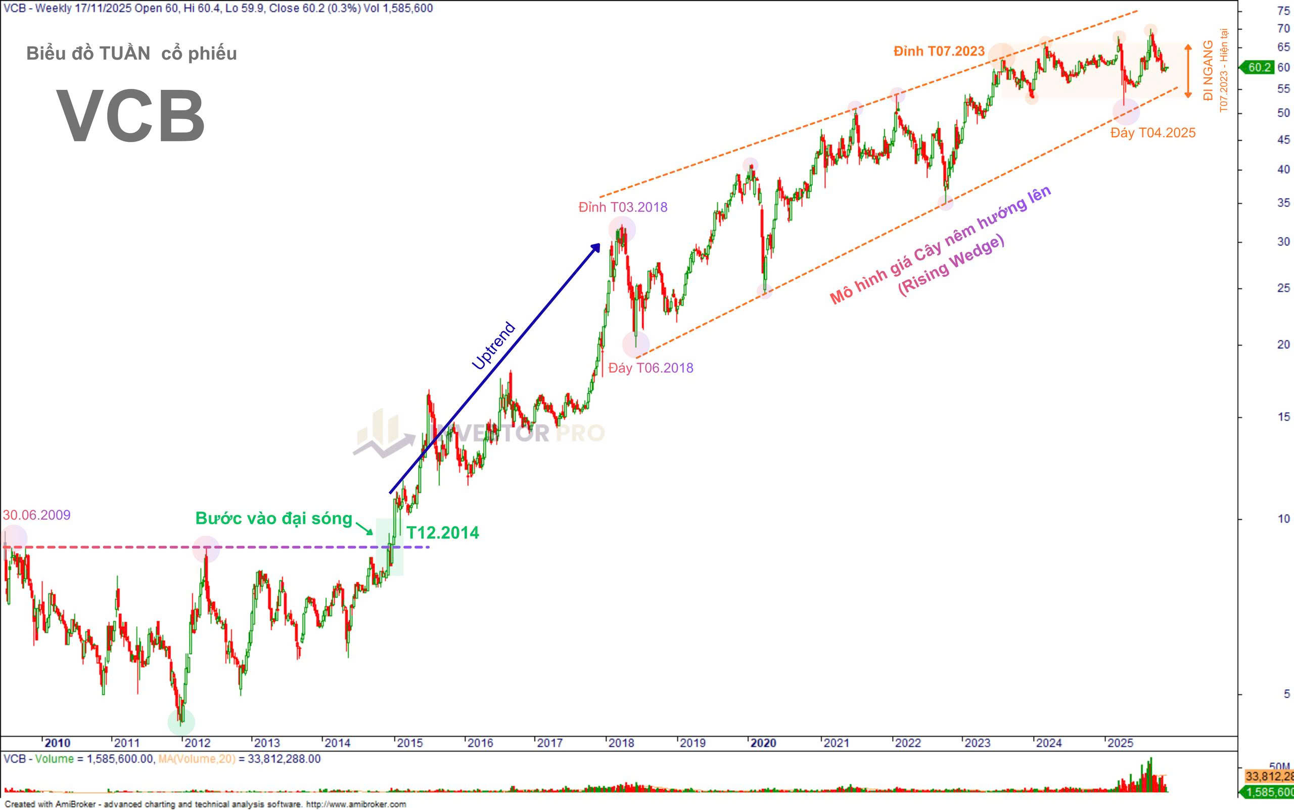Hãy dành ra 5 phút cùng Investor Pro “soi chart” VCB để thấy: