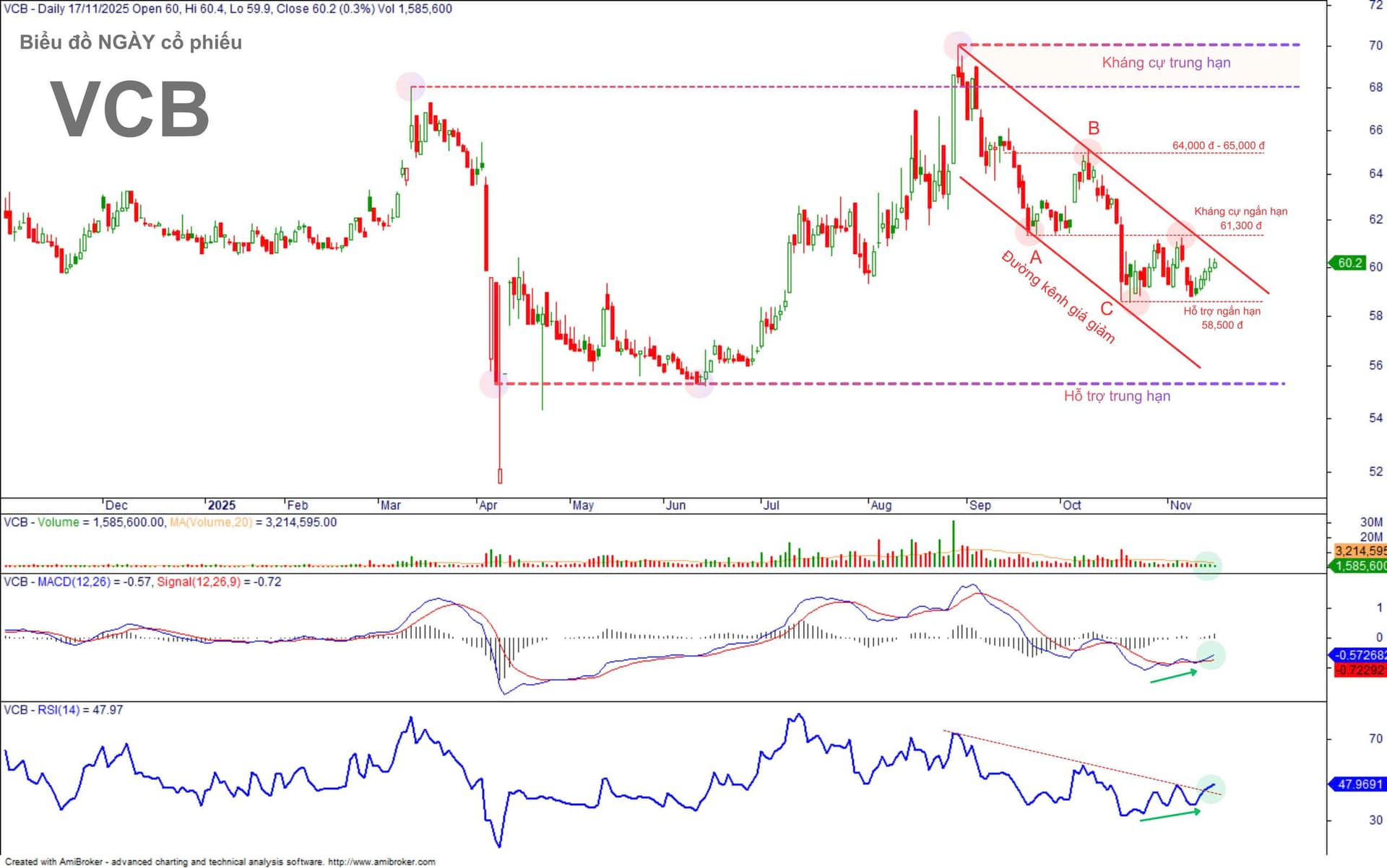 Xem bài phân tích chi tiết ngay: 5 phút soi Chart cổ phiếu VCB: Xu hướng dài hạn vận hành trong mô hình cảnh báo rủi ro Rising Wedge