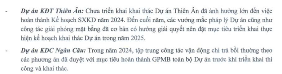 Dự án BDS thì không quá lớn và thực hiện kéo dài nhiều năm vẫn dính tới GPMB chưa được ổn thỏa nên kiểu này thường sẽ làm dần dần hoặc delay khó dự đoán chính xác được thời điểm kinh doanh. Trong 2025 có thể vẫn sẽ được hạch toán một phần từ dự án Thiên Ân.