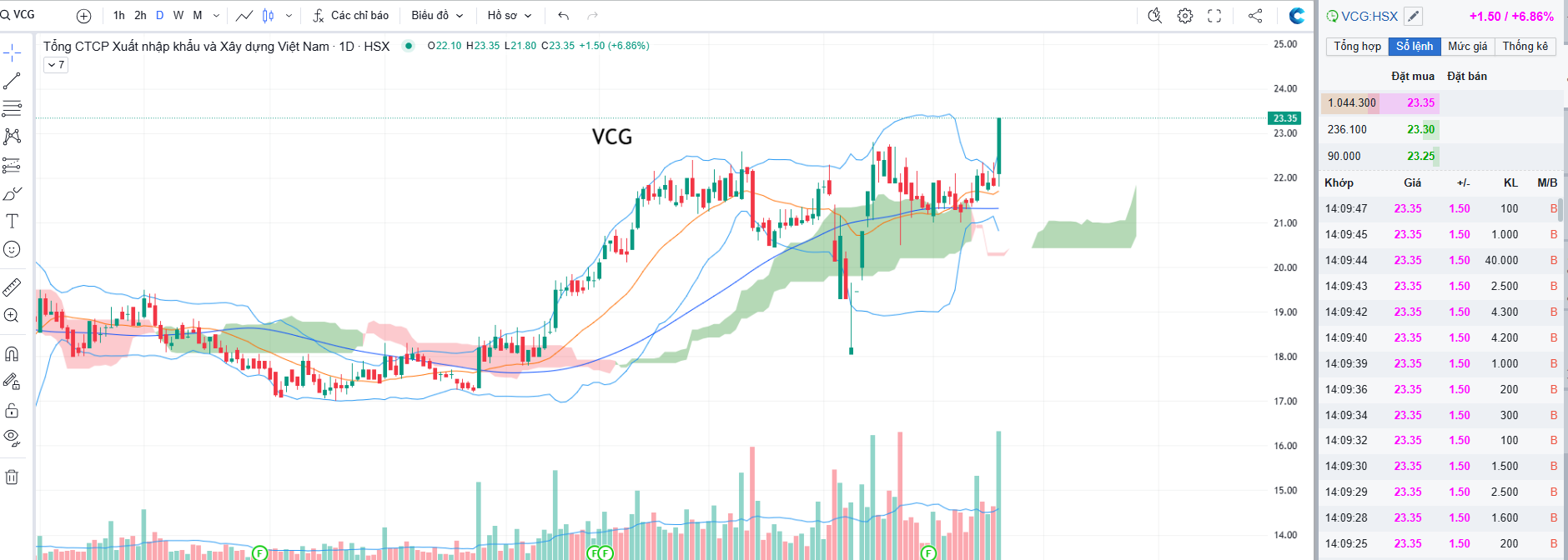 Đến lượt cổ phiếu VCG tím, hơn 2 năm qua mới thấy cổ phiếu đầu tư công xuất hiện 1 mã tím.