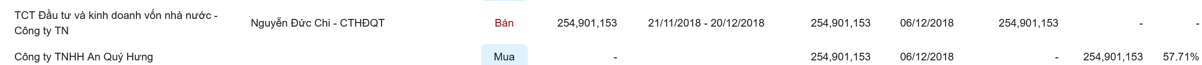Vào giai đoạn năm 2018, An Quý Hưng bất ngờ làm 1 case thâu tóm "Gã Tí Hon thâu tóm Tên Khủng Lồ với việc mua toàn bộ lượng vốn của nhà nước đang sở hữu như trong hình ở dưới đây: