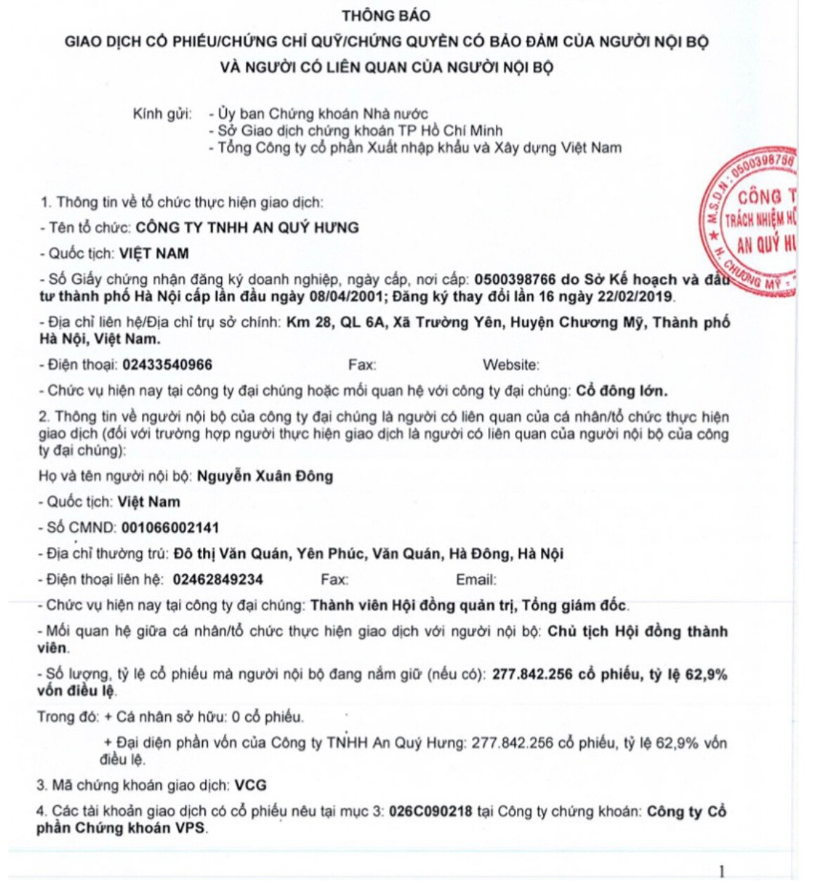 Về bản chất, không có sự thay đổi quyền lực hay sở hữu tại VCG. Sẽ có thay đổi quyền lợi khi VCG có tạo ra Lợi nhuận. Lúc này, bác Thanh đã có sở hữu và có lợi ích từ VCG. Cụ thể: