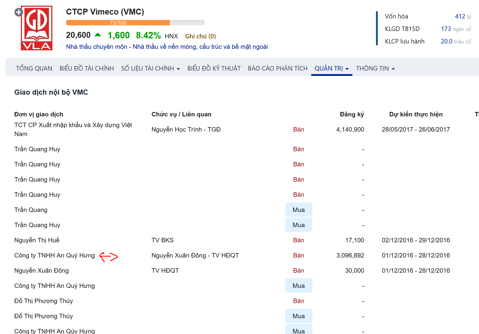Chính vì thế, không lâu sau đó, An Quý Hưng đã bán toàn bộ hơn 3 triệu cổ phần nắm giữ tại Vimeco vào cuối năm 2016, chính thức chấm dứt hợp tác giữa 2 bên.