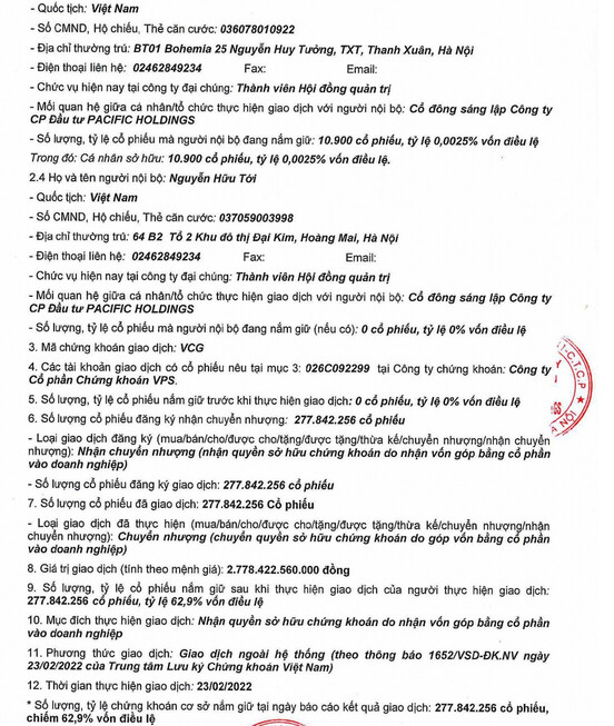 Cảm ơn Bác, chờ tin này đã lâu. Trong cổ đông của Pacific có cả Bác Mậu từ thành viên HDQT của VCG nắm vốn góp trong đây.