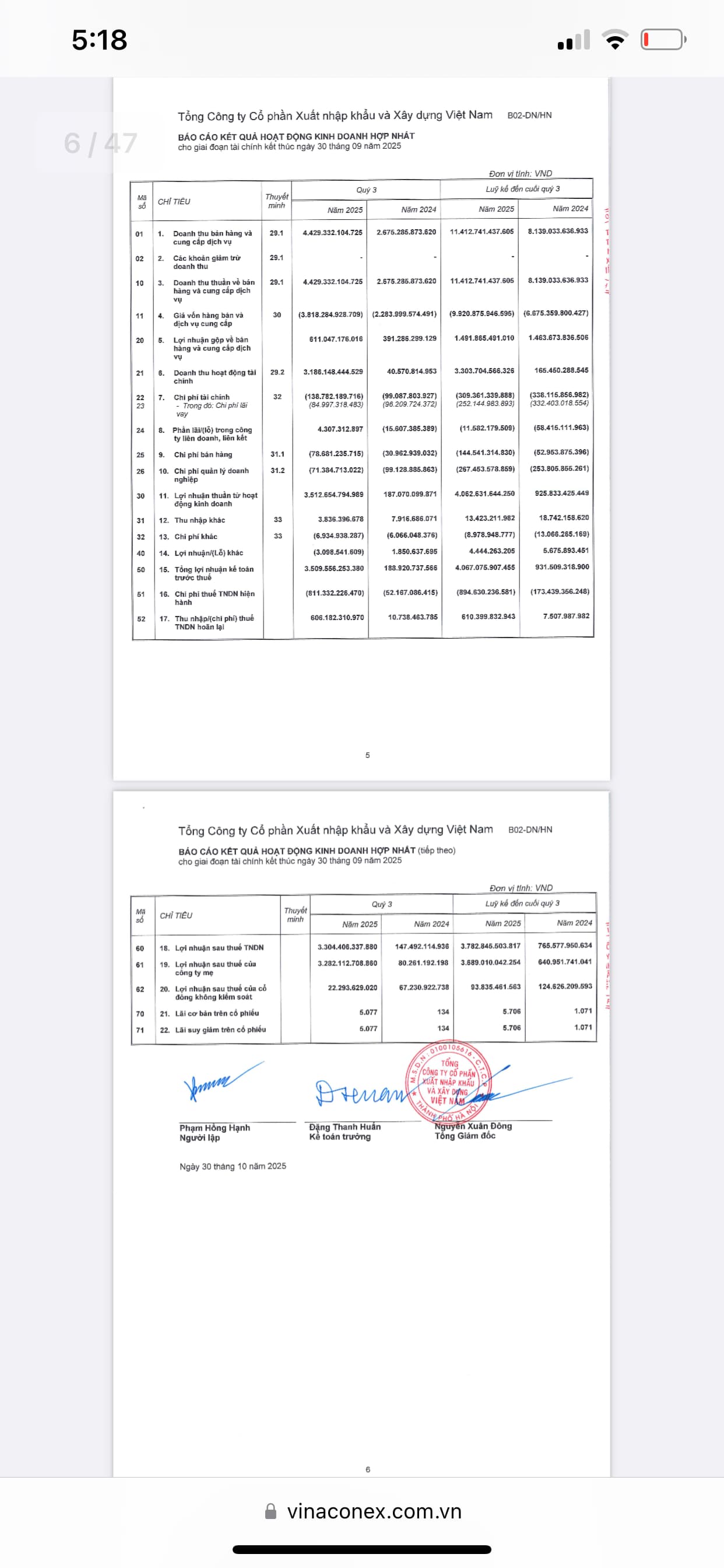 vể tinh hình kinh doanh của VCG thì khỏi nói, quý 3 vừa qua mảng xây dựng-dien nuoc và giáo dục vào phát triễn so với cùng kỳ, ln gộp mảng chính hơn 600 tỷ tăng truỏng hơn 50%, và q3 này mảng bds đem về cho VCG LN dột biến LNsT hơn 3200 tỷ, nâng tổng LNsT 9 tháng đầu năm lên 3700 tỷ, eps gần 6k nằm trong top các DN có eps cao trong q3.