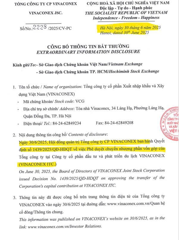 - Tên doanh nghiệp: Tổng Công ty Cổ phần Vinaconex (VCG)