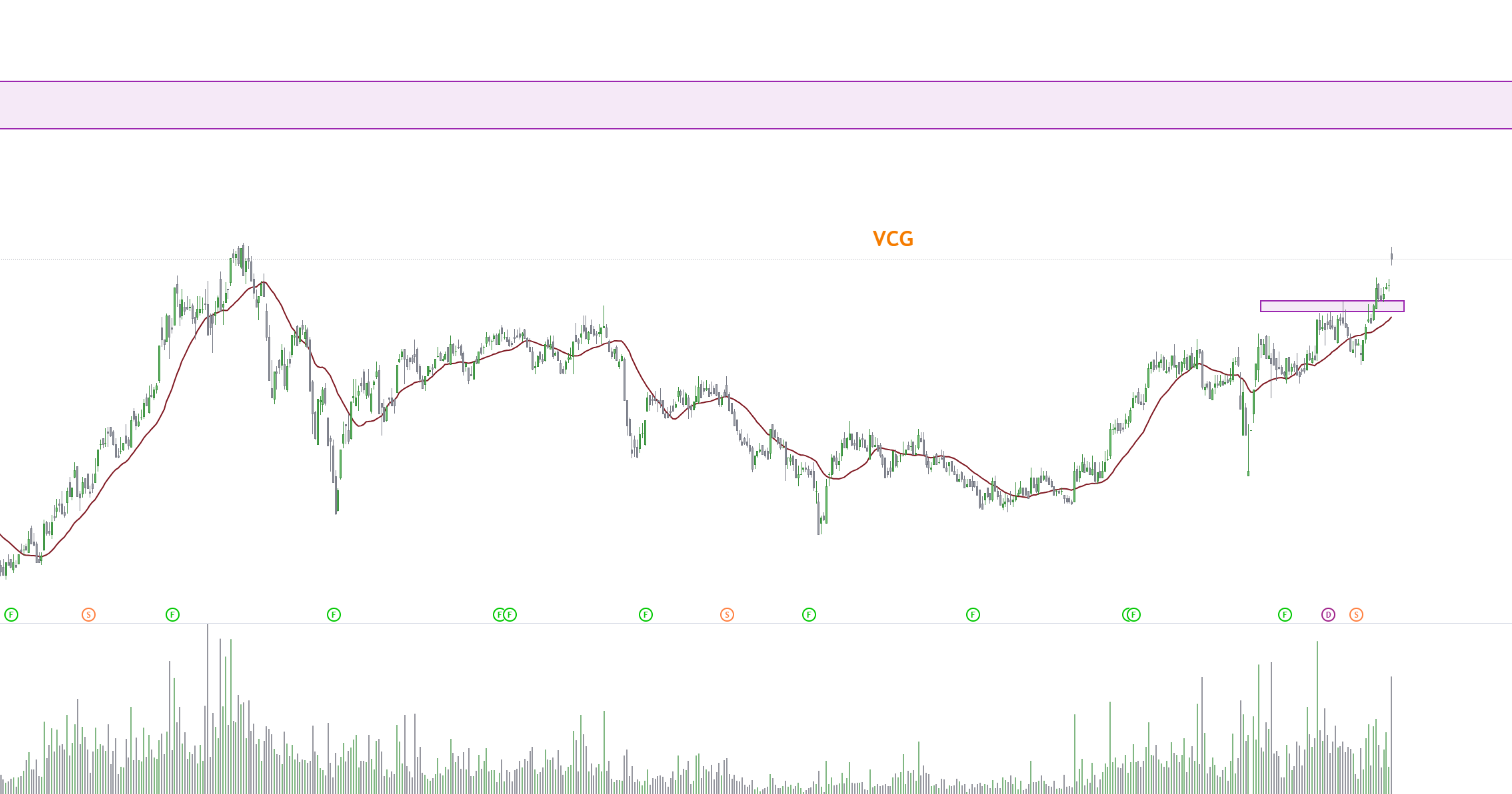 -Cấu trúc lớn: VCG hiện đang dần hoàn thiện cấu trúc Trading Range tích lũy đi ngang trong khoảng hơn 1 năm với tính chất hấp thụ trong các nhịp giảm thể hiện khá rõ và cầu duy trì ổn định trong các nhịp swing up. Đặc biệt trong nhịp giảm thuế quan vừa rồi cổ phiếu không giảm sâu cũng như hồi hình chữ V ngay sau đó chứng tỏ cầu đỡ dưới khá tốt và sau đó đã có thời điểm đóng được trên vùng 20.6 cho tín hiệu SOS (Sign of Strength). Mặc dù mất thời gian đi ngang hấp thụ tương đối lâu nhưng cổ phiếu vẫn tôn trọng cấu trúc tăng và nếu trong các phiên tới đóng được trên 21 thì sẽ khẳng định vùng bán trước đó chỉ là của nhỏ lẻ.