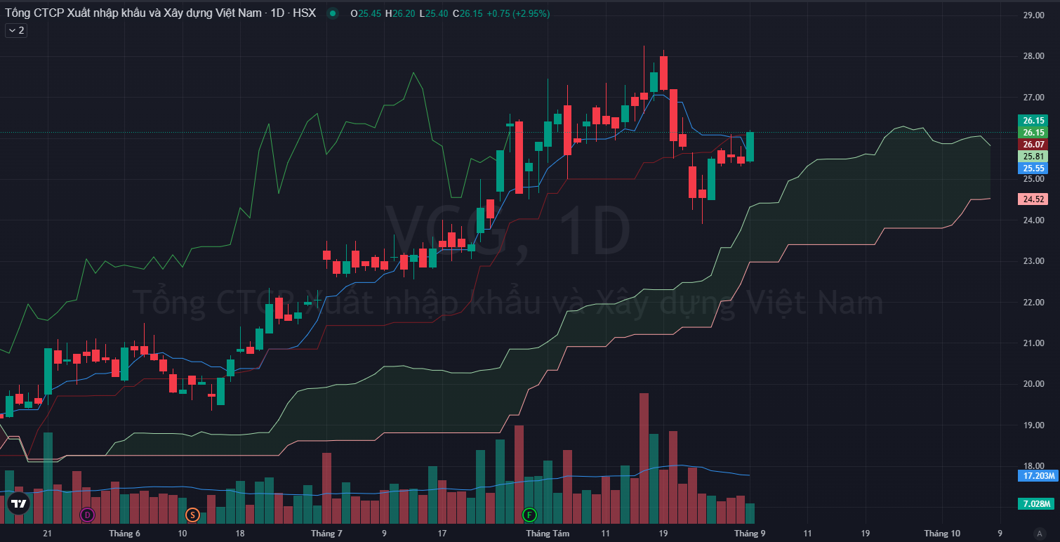 Agriseco cũng khuyến nghị tích cực dành cho cổ phiếu VCG. Dự án Vera Diamond City đã ghi nhận tỷ lệ hấp thụ tích cực trong đợt mở bán 1 và đang có tỷ lệ đặt cọc gần 40% chỉ trong 1 tháng đầu mở bán giai đoạn 2.