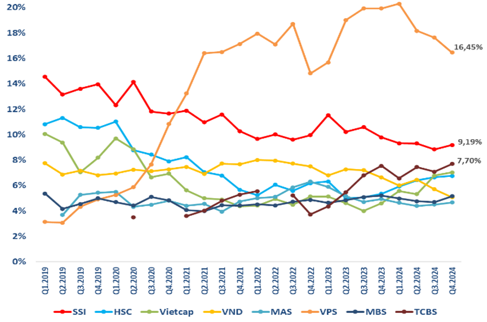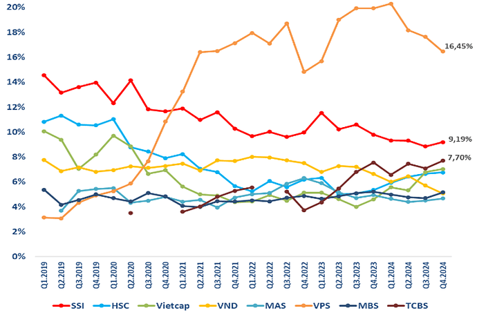 Để cạnh tranh các công ty đều cố gắng làm mọi cách để lôi kéo khách hàng sử dụng đòn bẩy tối đa có thể như giảm phí giao dịch, gia tăng thị phần và trong các quý gần đây thậm chí là liên tục giảm lãi vay margin để cạnh tranh nhau.