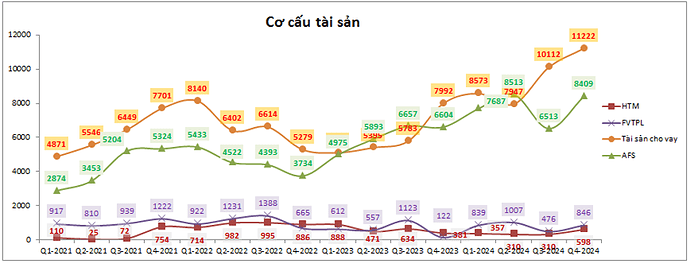 Tài sản cho vay liên tục tăng khá tốt từ Q4-2023 cho tới nay bất chấp thị trường chung có những giai đoạn rất khó khăn cả về điểm số và thanh khoản. Điều này cho thấy những nỗ lực lớn mà công ty đã làm được trong Q4 vừa qua để giúp kết quả kinh doanh của công ty tiếp tục tăng trưởng trong bối cảnh khó khăn hiện tại.
