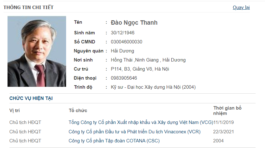 - Đây là điểm đáng chú ý, và mình cho quan trọng nhất trong case đầu tư này. Ngay sau khi tăng vốn, vào tháng 3/2021, VCR nhanh chóng bổ nhiệm Bác Đào Ngọc Thanh làm Chủ tịch HĐQT.