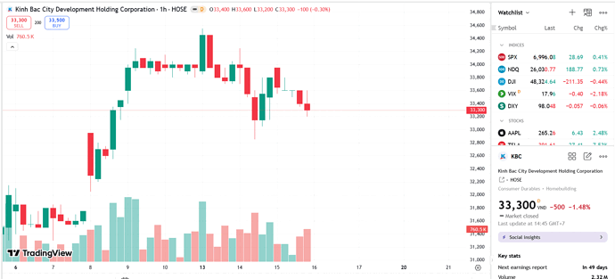 Sơ đồ giá cổ phiếu KBC trên TradingView.