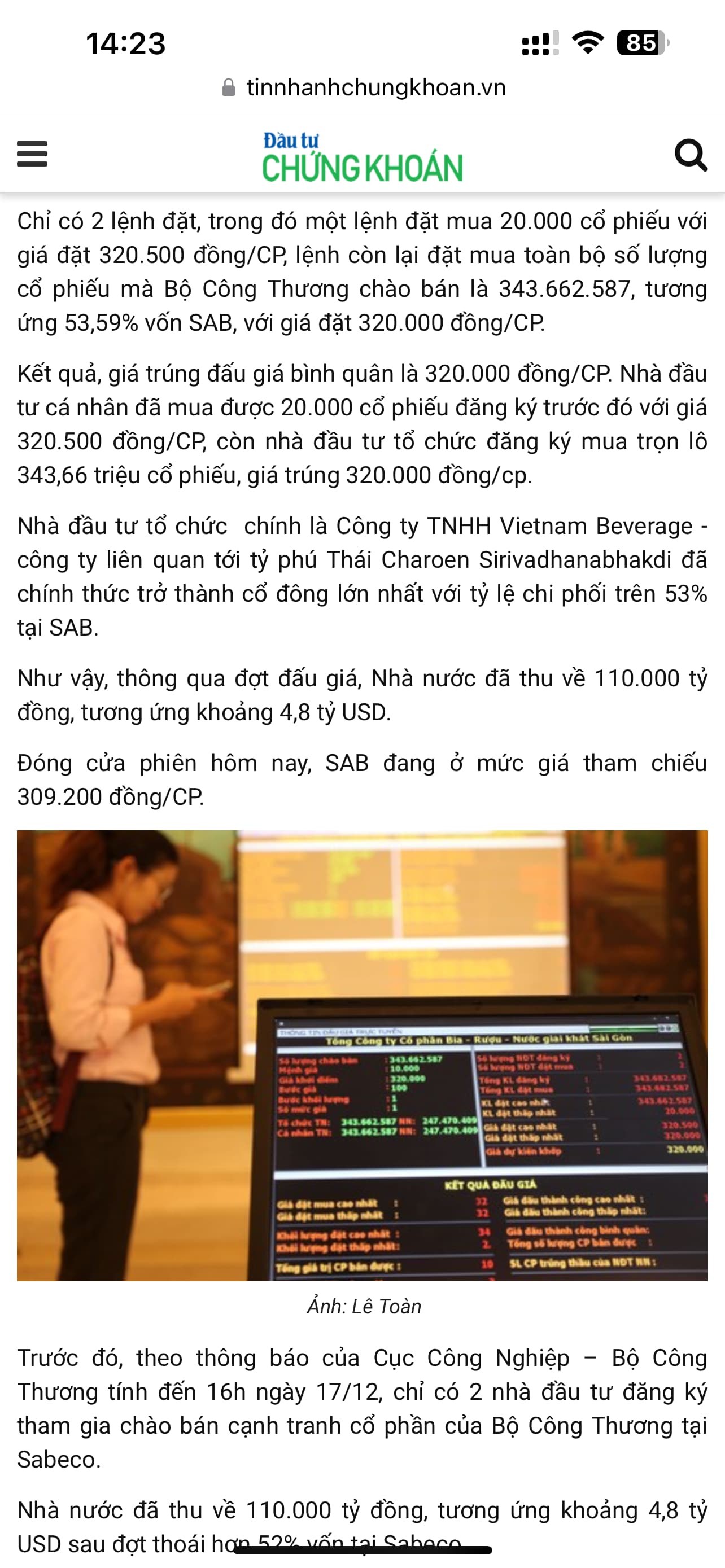 Đừng đìa vs người thái Đấu giá Sabeco: Đại gia Thái mua 53,59% vốn, Bộ Công thương thu về gần 110.000 tỷ đồng | Tin nhanh chứng khoán