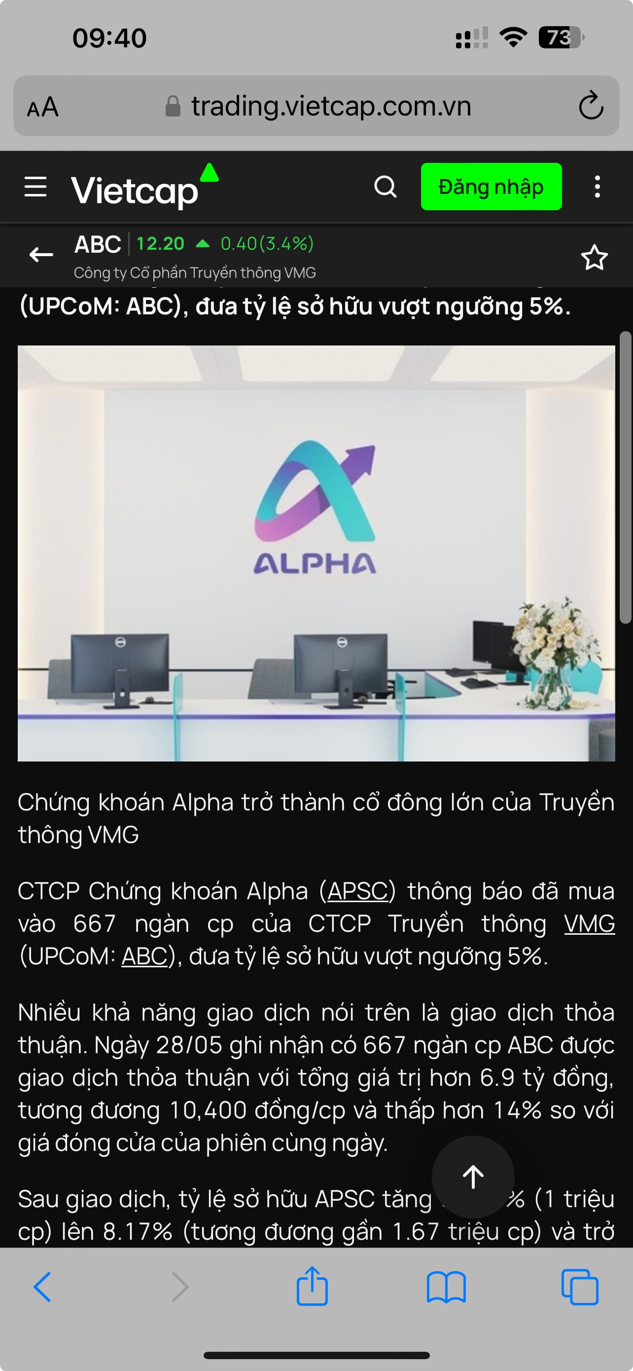 chúc mừng VEC. deal này đậm, nhưng cũng chỉ mua đc ít như MTA năm xưa. chọn cổ đúng, phân tích đúng, nhưng vol nhỏ quá nên căn bản ko chơi được nhiều. bro có duyên thì bắn tầm ngắm vào ITC dần dần đi.