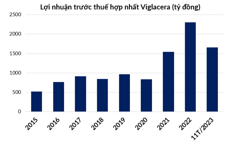 Như vậy tính riêng tháng 10 và 11, Viglacera ước lãi trước thuế hợp nhất khoảng 74 tỷ đồng. Quý IV/2022, lợi nhuận trước thuế hợp nhất đạt gần 272 tỷ đồng.