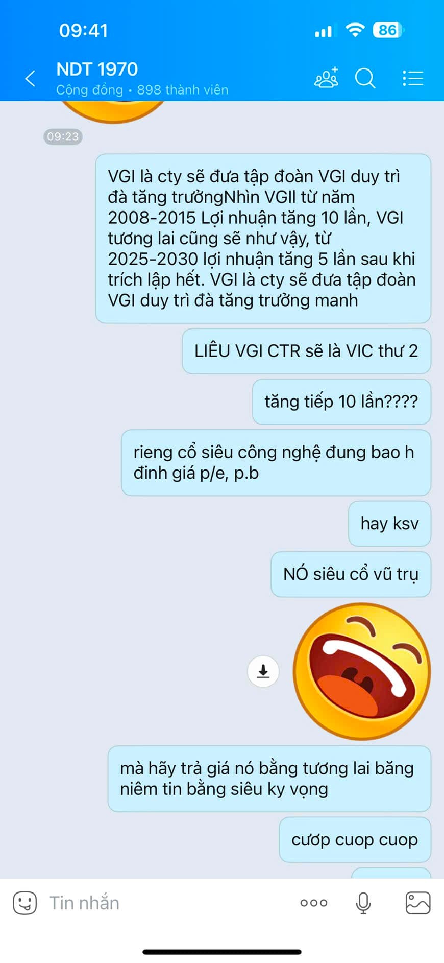 Tiền vào thì nó lên chứ VGI cơ bản doanh nghiệp định giá đắt. Định giá hiện tại là định giá của tương lai rồi còn gì nữa
