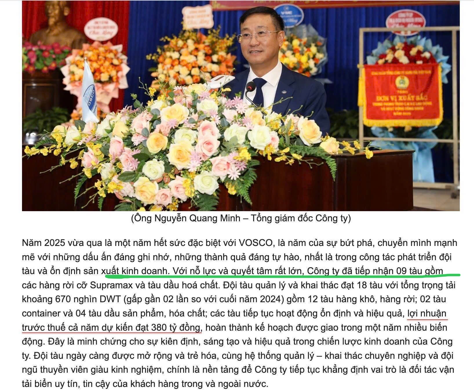 Sau hơn một thập kỷ VOS lần đầu tiên quyết tâm tăng quy mô đội tàu lên GẤP ĐÔI chỉ sau một năm với sự quyết liệt của ban lãnh đạo công ty. Bắt đầu chia cổ tức bằng tiền 1100 đồng sau rất nhiều năm không chia cũng là minh chứng cho sự quyết tâm này