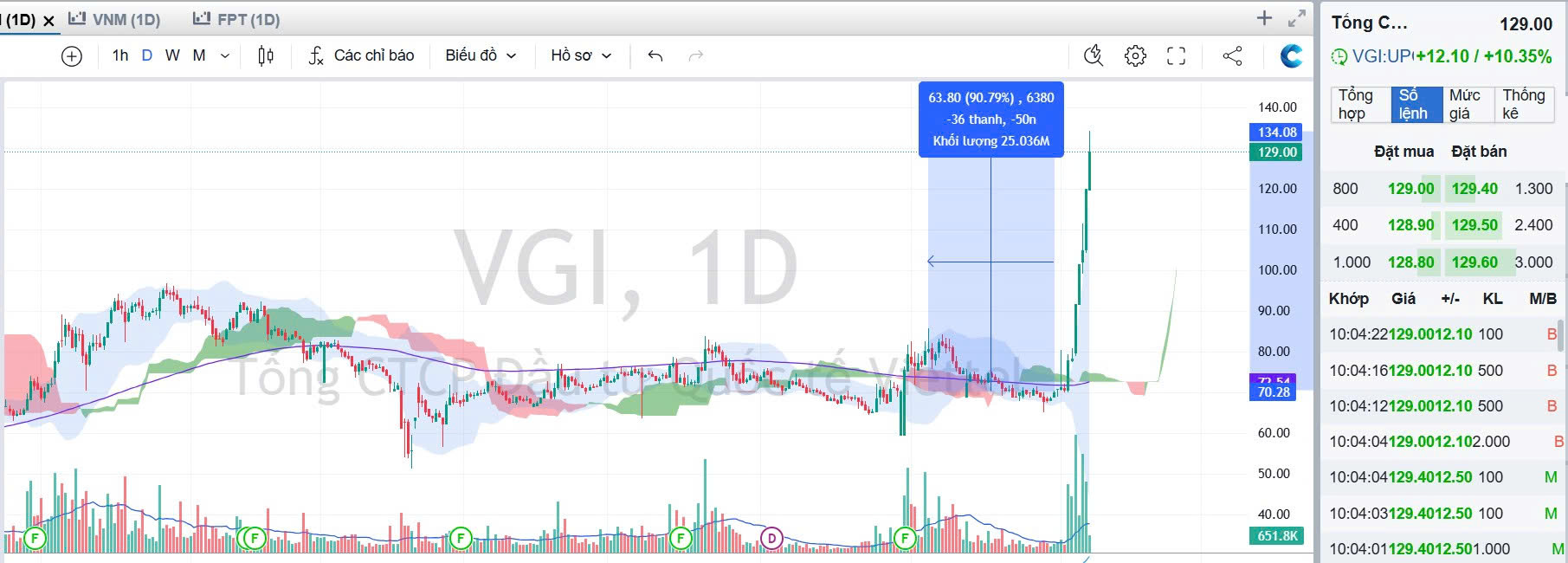 Cân nhắc chốt lãi hết VGI thôi nhà mình. Cổ phiếu tăng 50% trong vòng 5 phiên, quá tuyệt vời rồi.