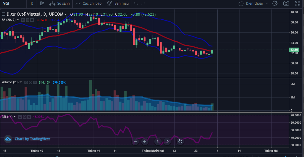 Về kỹ thuật VGI đang bắt đáy đảo trend MA20 cắt vào giá