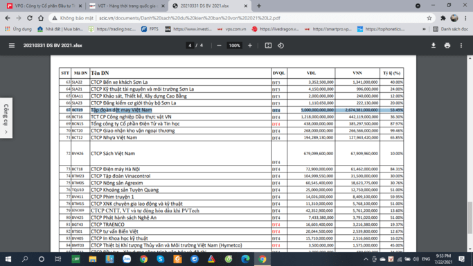 NĂM NAY VGT có trong danh sách thoái vốn của SCIC NHÉ