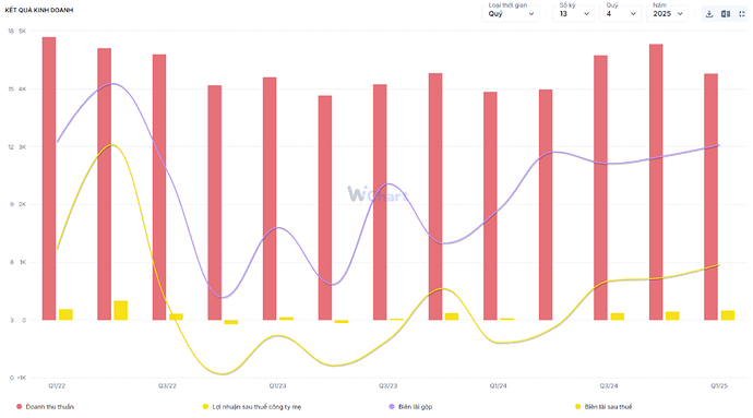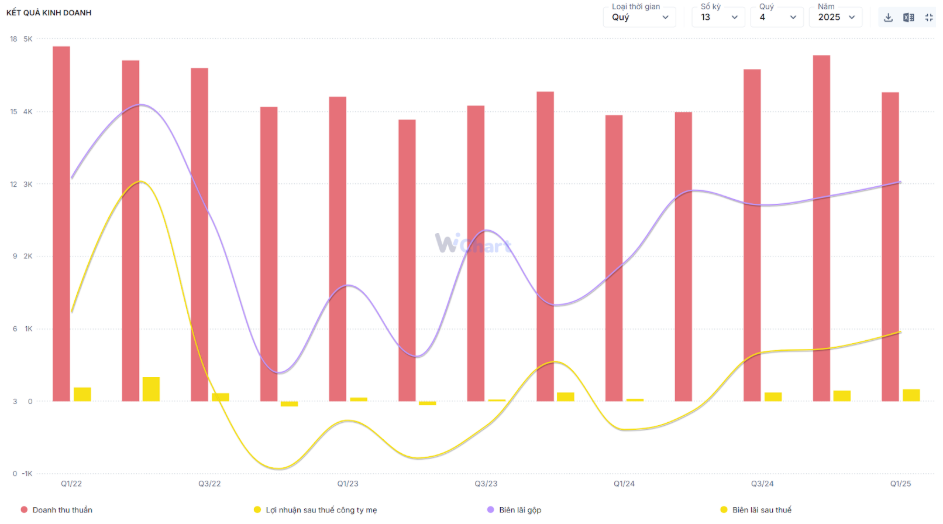Báo cáo Q1/25 của VGT ghi nhận tăng trưởng rất tích cực về cả doanh thu và lợi nhuận. Cụ thể, doanh số bán hàng trong quý ghi nhận 4.267 tỷ đồng (+8% yoy), nhưng nhờ giá vốn hàng bán chỉ bán tăng trưởng 4% so với cùng kỳ, nên lợi nhuận gộp đạt mức 516 tỷ đồng – tăng trương mạnh gần 50% yoy. Biên lãi ròng cũng vì thế đạt 12,1% - là mức cao nhất kế từ đầu năm 2022 đến nay. Theo giải trình của Tập đoàn, nhu cầu thị trường tăng trở lại trong thời gian vừa qua giúp doanh số tăng mạnh. Bên cạnh đó, VGT cũng bám sát thị trường, nhiều thời điểm chốt được giá bông, giá sợi tốt để cải thiện biên lãi. Doanh nghiệp cũng tích cực tối đa cơ hội để thực hiện hóa sớm các đơn hàng trước những diễn biến phức tạp và bất ngờ của chính sách thuế quan đến từ Hoa Kỳ.