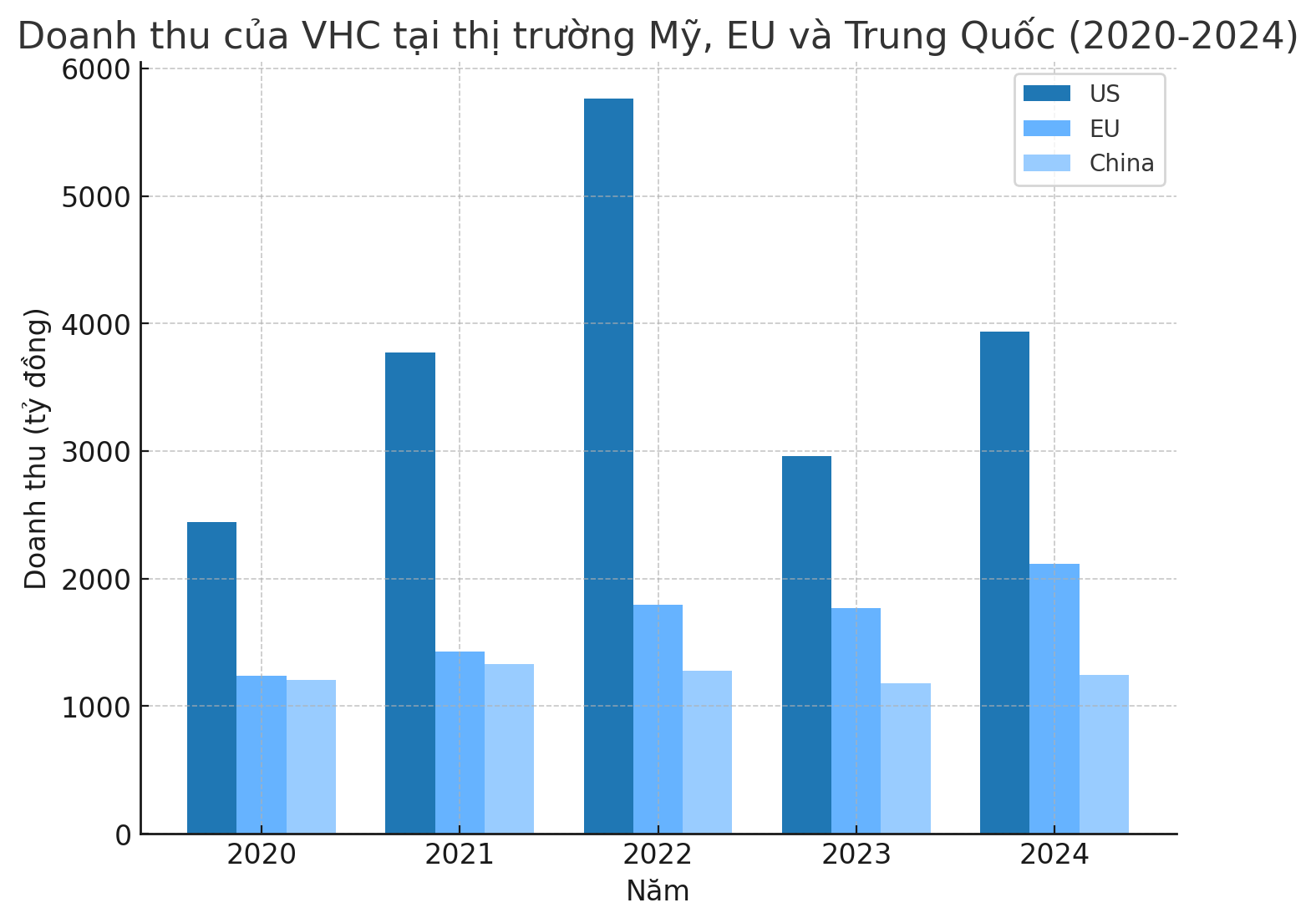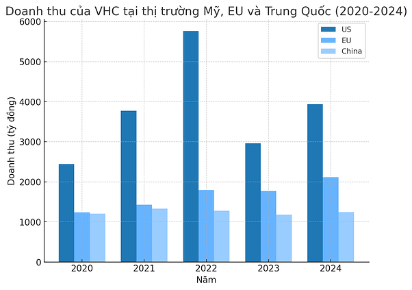Tại thị trường Mỹ-thị trường lớn nhất của VHC, đóng góp tới 1/3 tổng doanh thu và ghi nhận mức tăng trưởng 35,8% trong năm 2024. Cá rô phi hiện là loại cá thịt trắng được ưa chuộng nhất tại Mỹ, với hơn một nửa nguồn cung nhập khẩu từ Trung Quốc. Tuy nhiên, từ đầu tháng 2/2025, mặt hàng này đã bị áp thêm thuế 10%, tạo cơ hội cho cá tra Việt Nam nhờ lợi thế giá nhập khẩu thấp hơn khoảng 20%. Việc tăng thuế cũng được kỳ vọng sẽ thúc đẩy nhu cầu nhập khẩu cá tra để tích trữ tồn kho ngắn hạn trước khi có thêm các lệnh áp thuế mới. Đặc biệt, Vĩnh Hoàn là doanh nghiệp Việt Nam duy nhất được miễn thuế chống bán phá giá tại Mỹ sau khi tranh chấp DS536 kết thúc vào tháng 1/2025, giúp công ty có lợi thế cạnh tranh đáng kể so với các đối thủ trong ngành.
