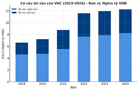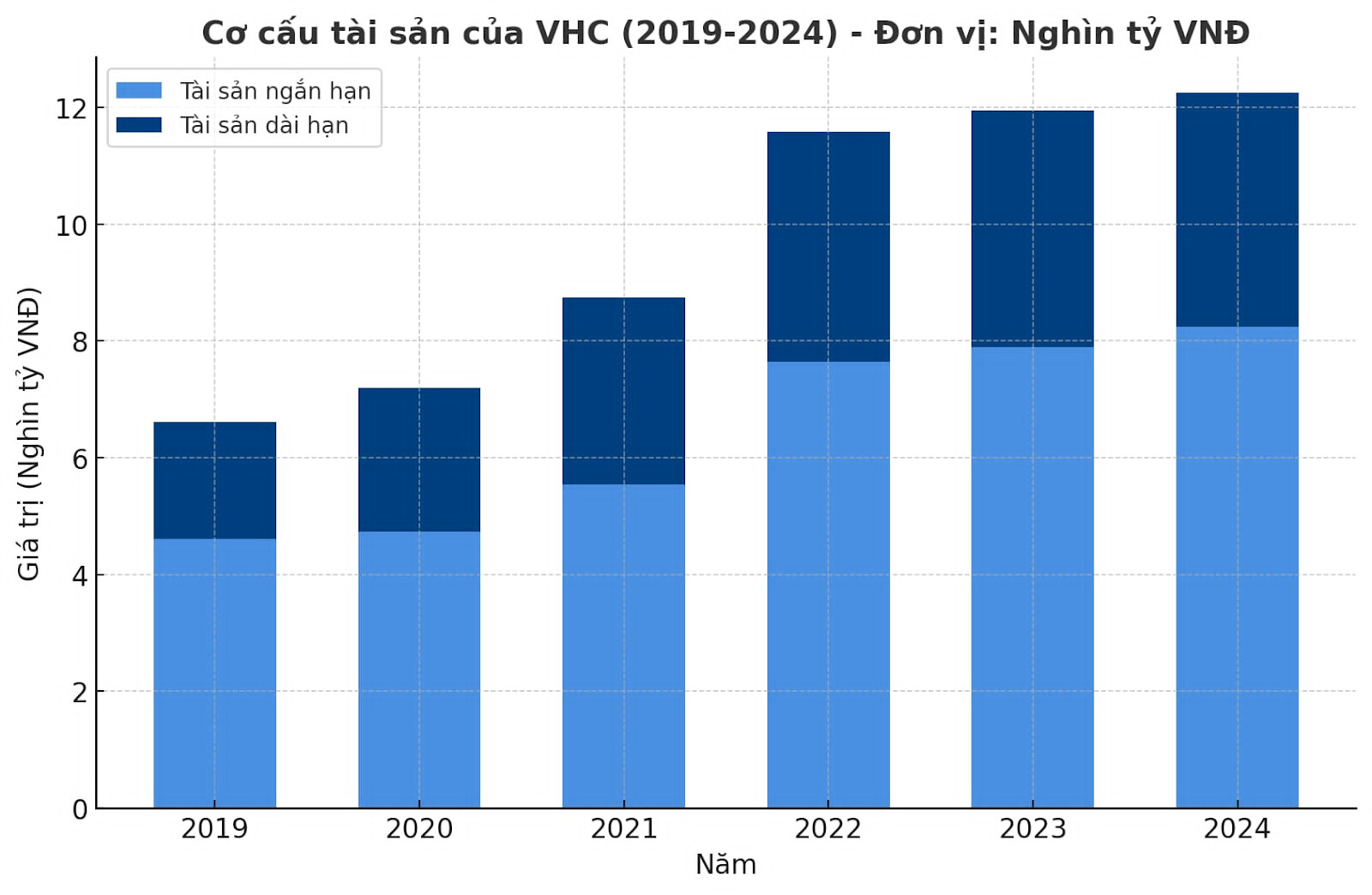 Tổng tài sản VHC vẫn duy trì tăng trưởng đều qua các năm, TSNH vẫn chiếm tỷ trọng chủ yếu trong cơ cấu với 67% với nhiều nhất là tiền và các khoản tương đương cùng với hàng tồn kho.