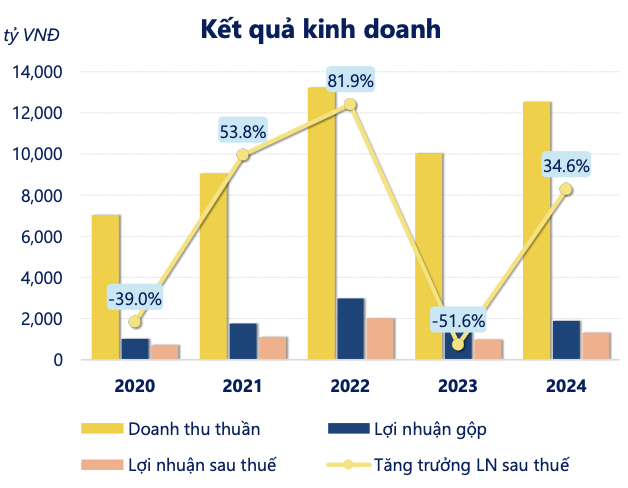 Chi phí lãi vay giảm xuống còn 73,33 tỷ đồng, trong khi chi phí bán hàng và quản lý doanh nghiệp tăng lên 638,5 tỷ đồng. Ngoài ra, chi phí khác cũng tăng so với năm trước, đạt 31,8 tỷ đồng. ROE tăng lên mức 14%, tăng mạnh so với năm trước đó sắp đạt lại mốc trung bình 5 năm gần đây. Dự báo với đà tăng trưởng thì năm 2025 sẽ đạt được mức ROE trung bình 5 năm 17.7%.