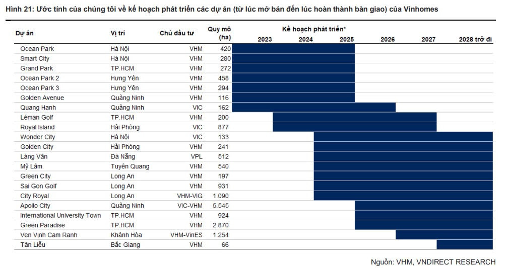 Không những vậy, Vinhomes đang từng bước mở rộng sang lĩnh vực bất động sản khu công nghiệp (KCN). Tháng 7/2024, công ty được chấp thuận đầu tư KCN Vinhomes Vũng Áng tại Hà Tĩnh, với quy mô 964,8ha và tổng vốn đầu tư 13.276 tỷ đồng. Tháng 1/2025, công ty được cấp phép đầu tư KCN Nam Tràng Cát tại Hải Phòng, với quy mô 200,4ha và tổng vốn đầu tư 2.253 tỷ đồng.