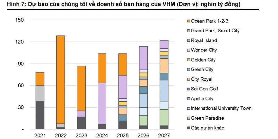 Trước đó, năm 2024, Vinhomes ghi nhận doanh số 103.900 tỷ đồng, tăng 19,4% so với cùng kỳ. Tổng giá trị doanh số bán bất động sản chưa ghi nhận lũy kế cuối năm đạt 94.200 tỷ đồng, riêng Vinhomes Royal Island đóng góp chủ đạo với 33%.