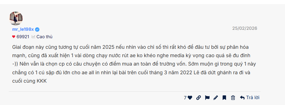 Tất nhiên chiến tranh nếu kéo dài thì tiêu cực sẽ rất lớn giá xăng dầu phân bón thuốc sẽ tăng rất cao, xăng trước 18-19k giờ đã là 25-26k rồi chỉ vài ngày đã tăng phi mã sẽ kéo theo giá hàng hóa, lạm phát tăng cao chính sách tiền tệ cũng sẽ ko thể nới lỏng → TS đầu cơ sẽ chết trước. Với mình thì mình đã nói AE giữ tỷ trọng hợp lý 50/50 thì kệ nó kê cao gối mà ngủ thôi