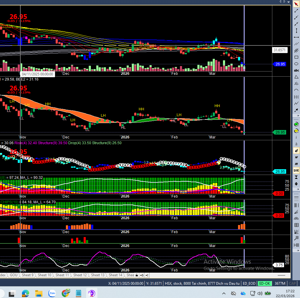 Tích cực chút là có lực mua vào nhẹ của cá mập, lên khi nào thì Lê ko biết bởi còn phụ thuộc vào dòng tiền