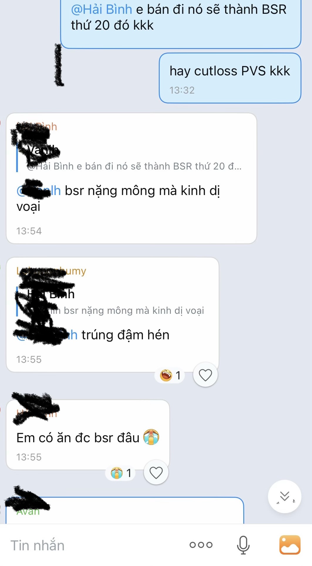 Nếu cho quay lại từ đầu thì giống pvs nếu bsr giảm từ 16 về 13 sau khi chia cổ tức ae sẽ hold hay bán ??? Cái mình muốn truyền đạt cho mọi người là cái tư duy với cp với chứng khoán chứ ko phải là phím 3 chữ ăn thì tung hô mà lỗ thì xoá rooom xoá nhóm -)).