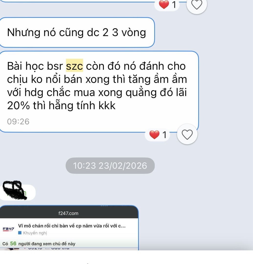 Nhiều lúc cũng cần tập cho chúng ta kiên trì chút quay lại bsr và szc có 2 đứa e mua mình bảo cả 2 cần kiên trì chút thì đứa thứ nhất cutloss bsr giá 15 lỗ 15% đứa thứ 2 lỡ mua szc giá 29 và vẫn hold và kết quả cũng chỉ 1 2 tháng đứa đầu giờ đập đầu vào tường vì tiếc đứa thứ 2 về bờ quá đơn giản
