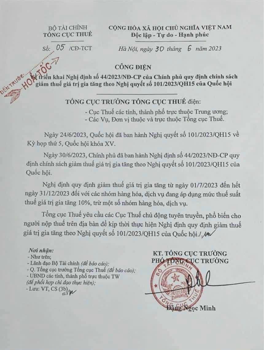 Bắt 1/7/2023- 31/12/2023 giảm thuế VAT