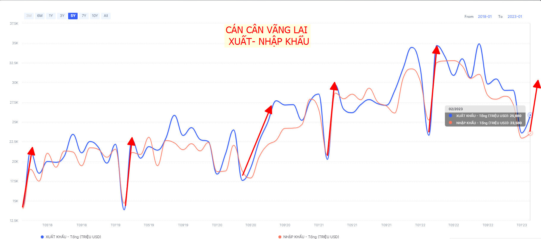 Trong video cuối tuần trước em Tùng có đề cập tới XUẤT-NHẬP KHẨU, cán cân này sẽ luôn tạo đáy và có sự phục hồi từ QUÝ 1 và chính phủ sẽ tập trung nhiều hơn vào XUẤT-NHẬP KHẨU trong nửa đầu năm