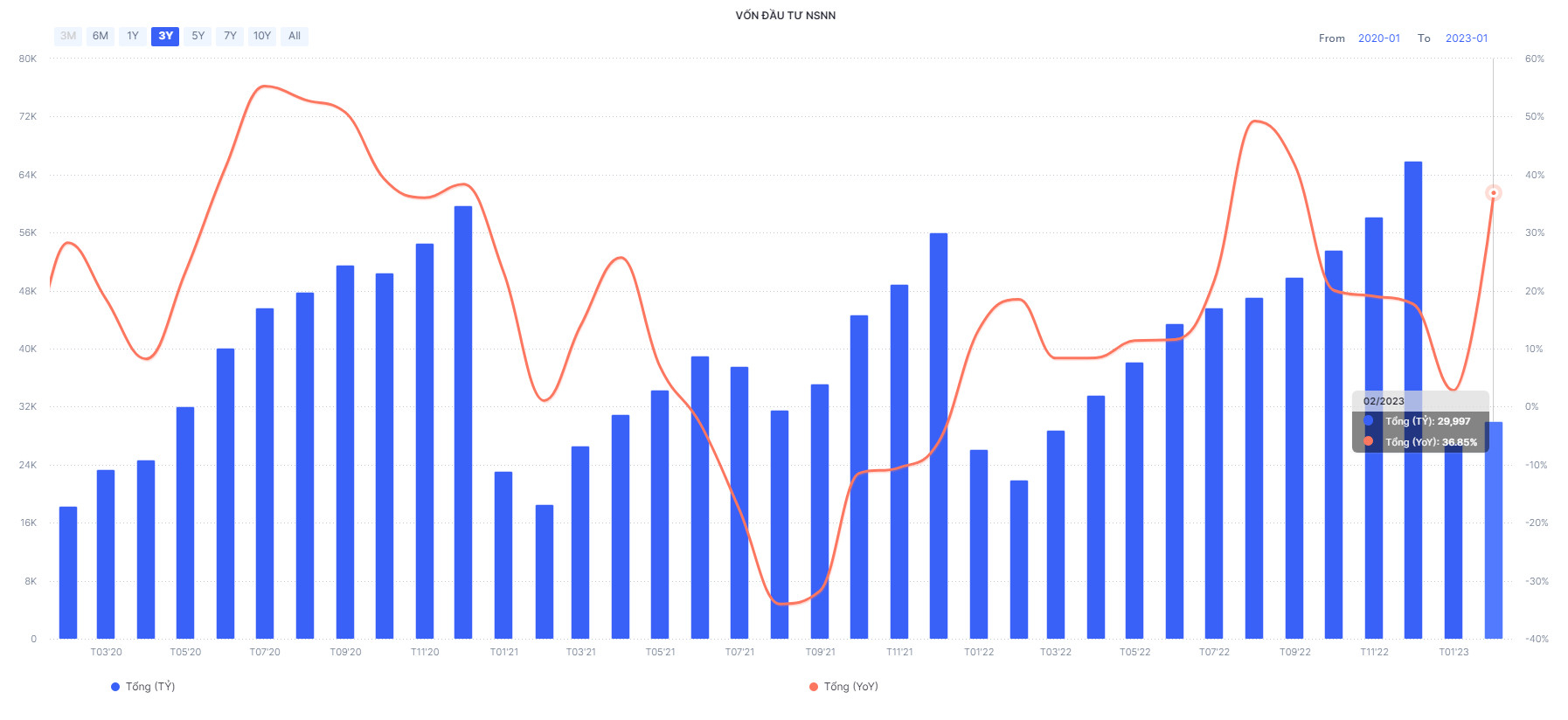 Số liệu giải ngân vốn đầu tư công tháng 2/2023. Nhìn chung tốc độ giải ngân này trong năm nay so với cùng kỳ năm ngoái là tương đối cao và tích cực